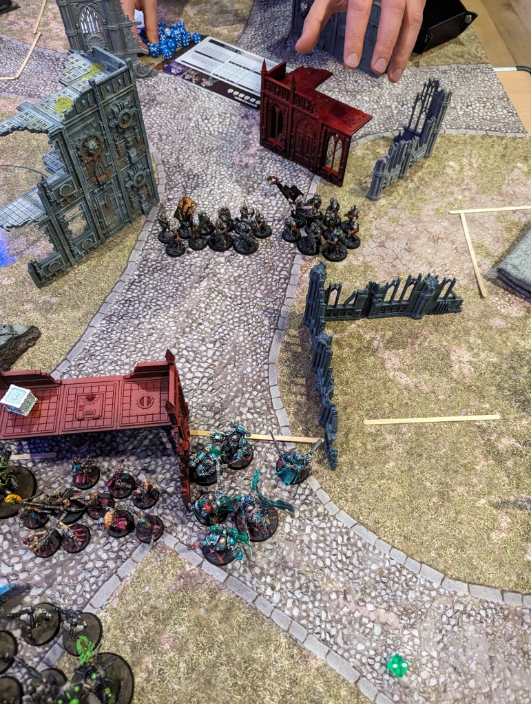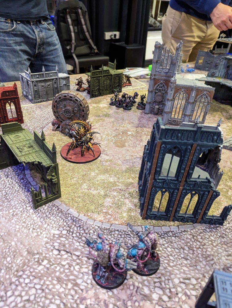I have also by now learned not to expect a knife-edge balanced hyper-competitive contest and treat it more as a chance to throw some dice, meet some new people and mess about with plastic soldiers for a while. The attitude shift may have helped. That said, I think there are still a few useful takeaway lessons for this game, especially regarding Genestealer Cults, which I’d never played against before. Absolutely everything about them came as a horrible surprise, which I suppose is thematic.