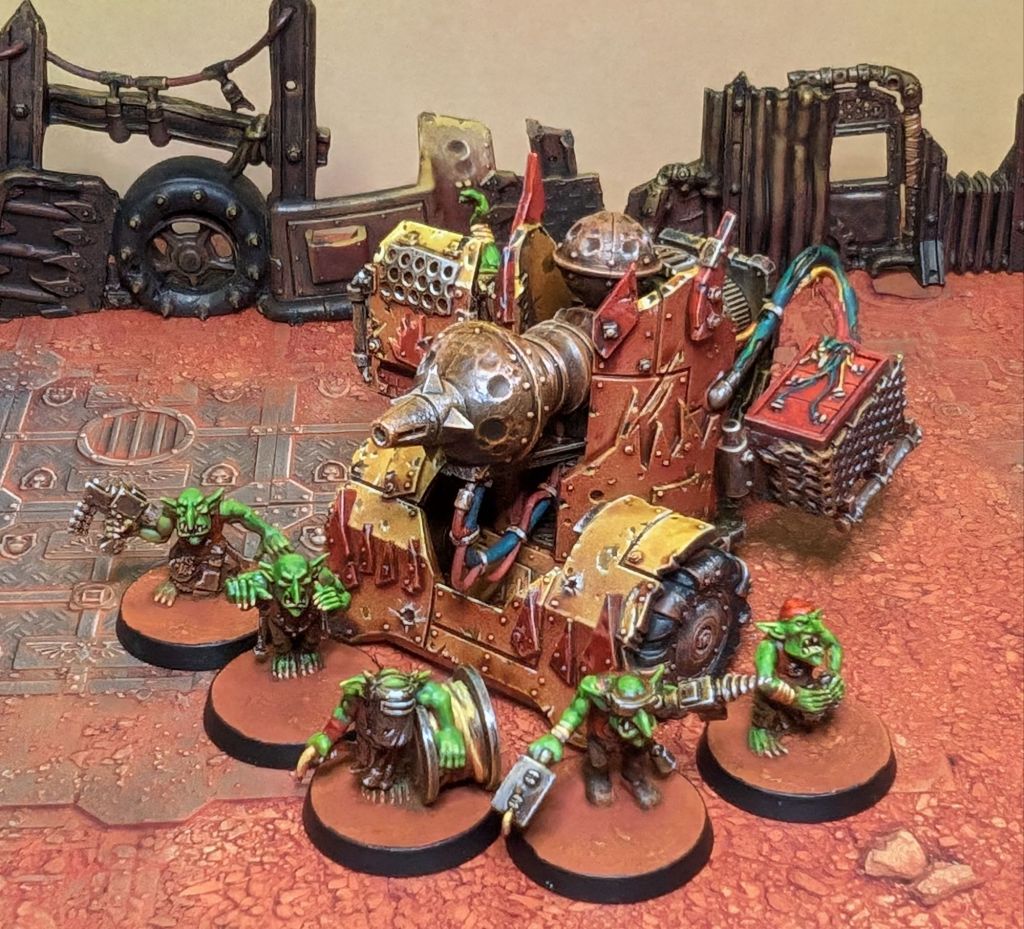 I thought I’d try to offset the randomness of the Bubblechukka by bringing 2 of them. This is pretty much the same as the first one, but this time I’ve mixed around the gretchin head and arms to create some individuality and given it red accents on both the gun and crew to hopefully make it obvious which set of tokens belong to which.