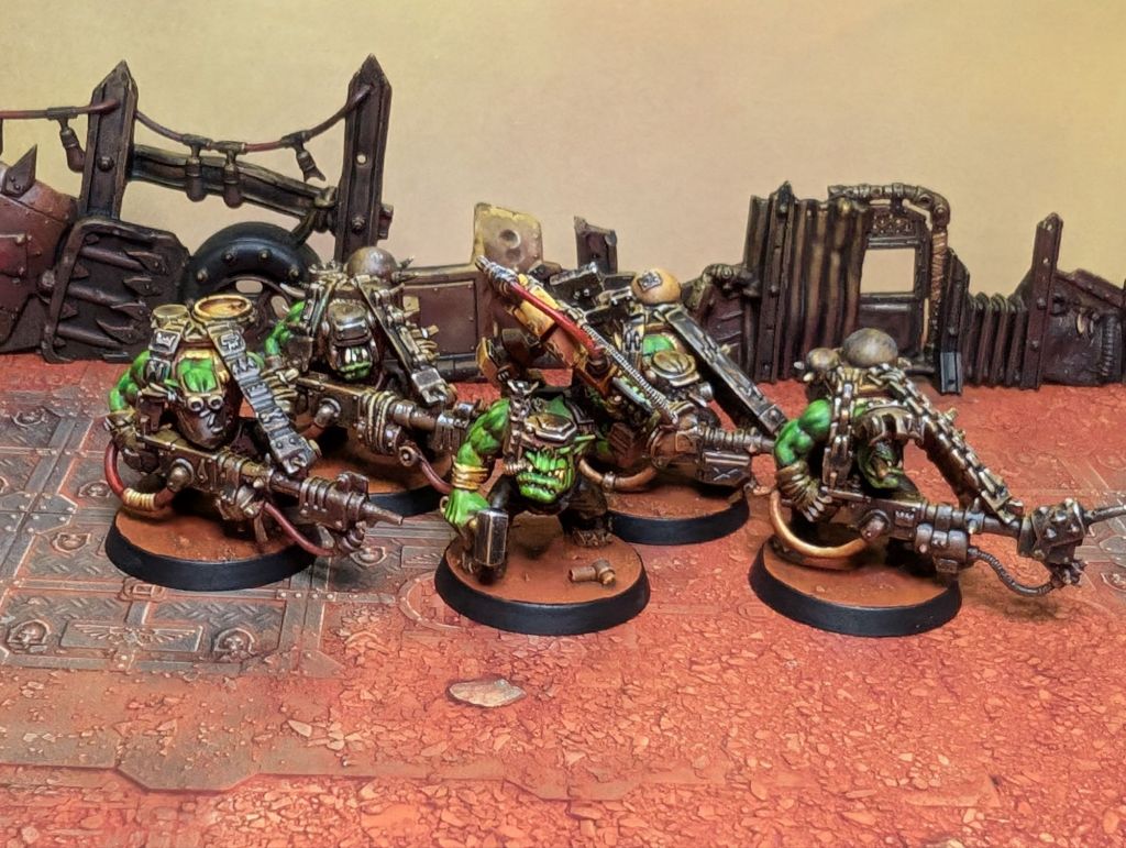 Ordinarily employed as a construction and repair crew assisting Big Mek Wurzag on board Da Gargantic, these Orks didn’t want to miss out on all the fun and so have souped up their welding gear to form impromptu flamers.