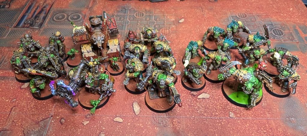 Our Voidbound campaign is now in phase 3 and that means I’ve had to paint another 500 points worth of Orks.  Here they are:
