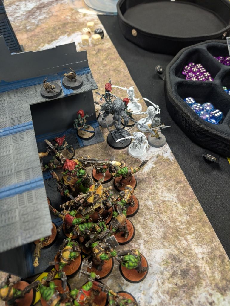 - This was my first time playing against Aeldari (since 2nd edition, when they weren’t called Aeldari) so it was interesting to see how they play. The answer is, not entirely dissimilarly to Orks since they are also an army of glass cannons. Neither particularly like being out in the open, which is why this game was pretty bloody.