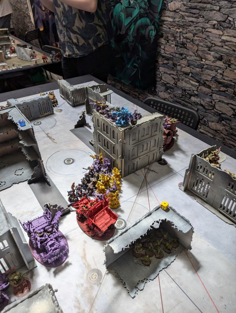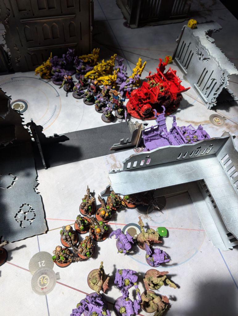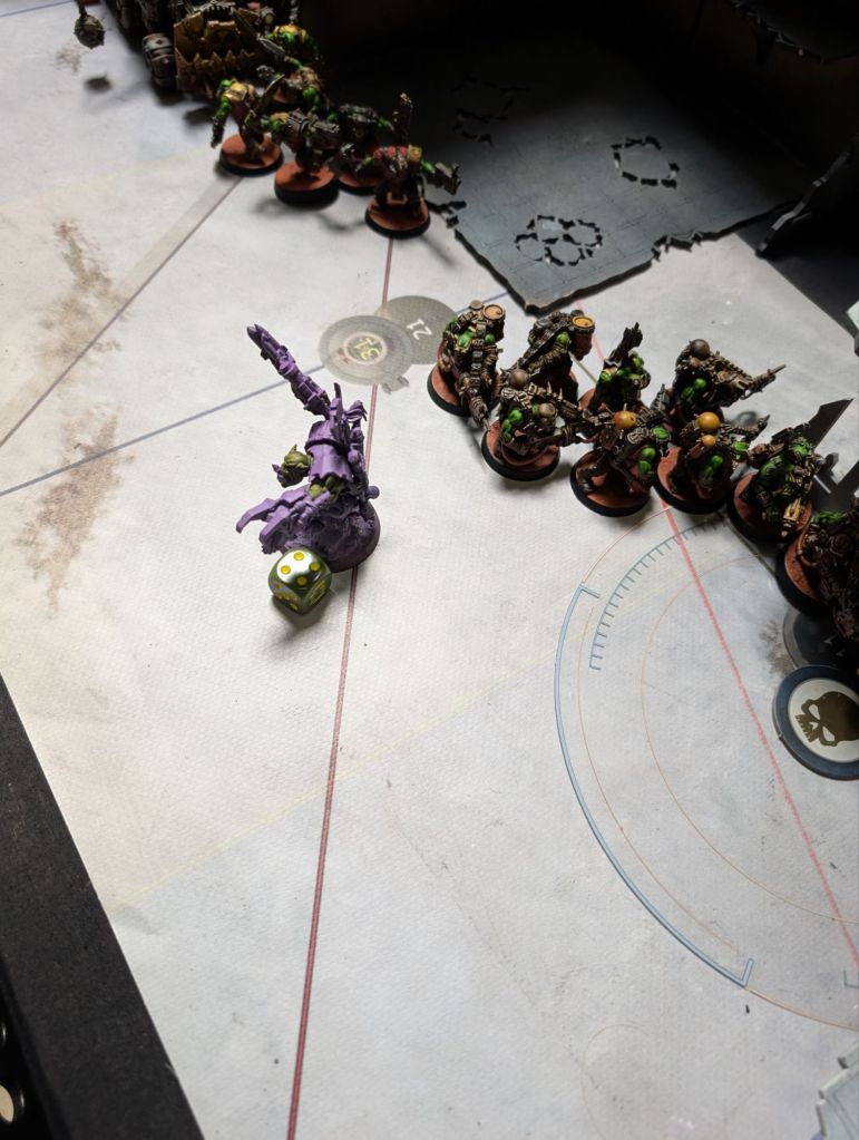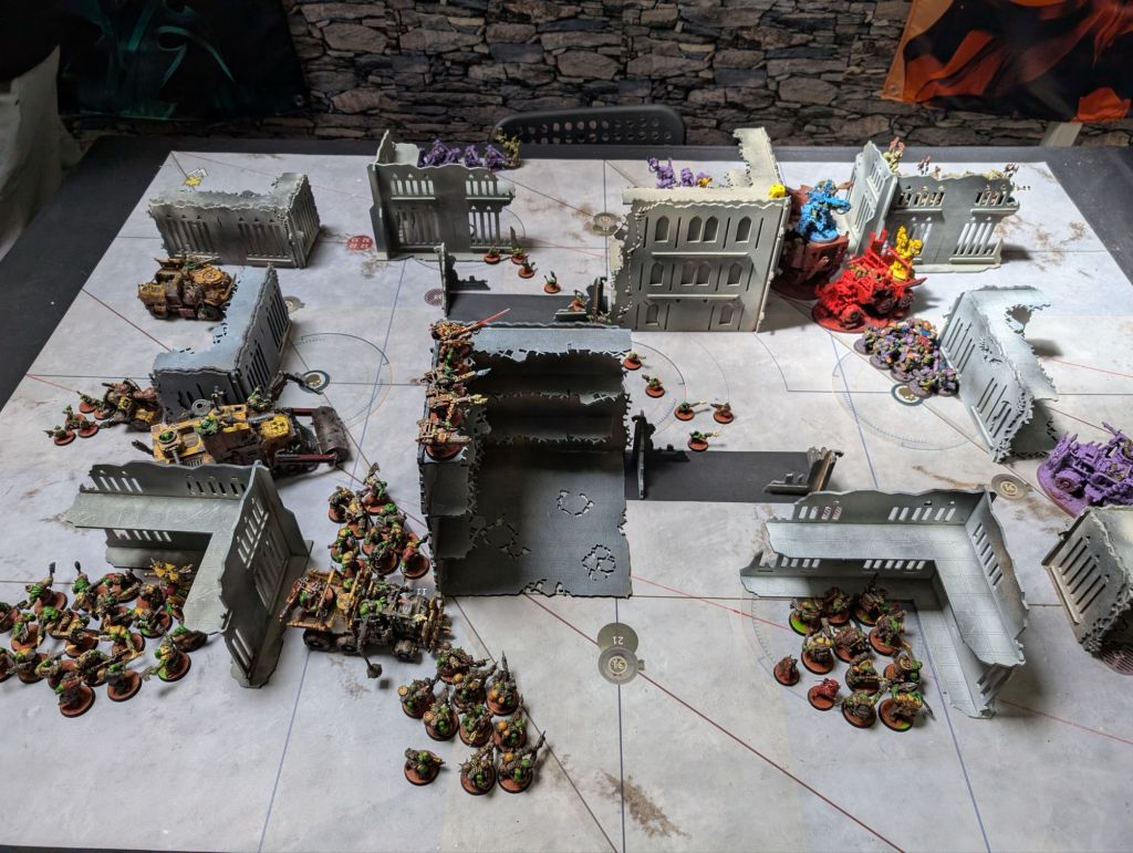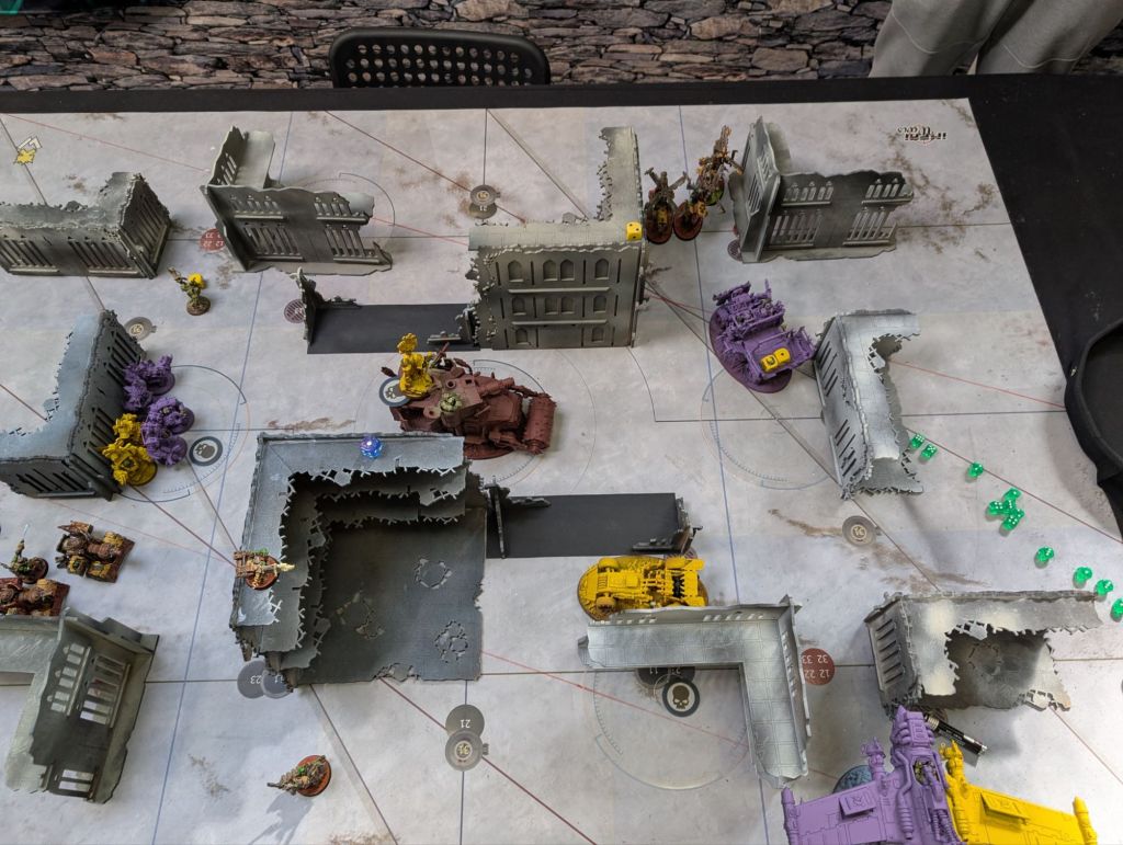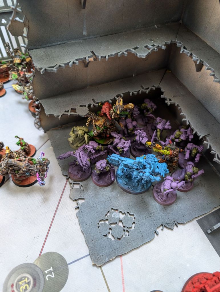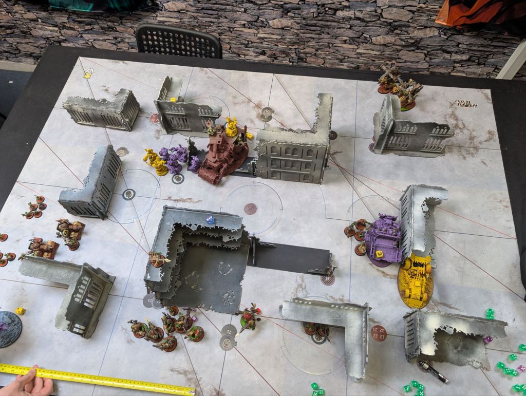 - Conversely, my standard approach to dealing with tough stuff like Terminators (or in this case, MegaNobz and Battlewagons) is not to deal with it. I slow it down, I sometimes feed it a cheap unit to keep it busy, but I mainly focus on the units I can reliably kill and the objectives I can reliably take. This is generally not a bad plan and would’ve worked here had the mission been scored purely on objectives. However it was not, and by neglecting to take out the tough stuff it gave my opponent’s characters somewhere to hide with their high-scoring blackstone chunks where – by the second half of the game – I had very little chance of clearing. I think the lesson here is to not let otherwise good tactics become so ingrained that they become habits rather than something consciously thought about.