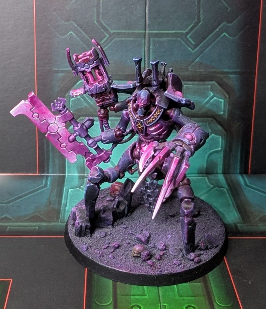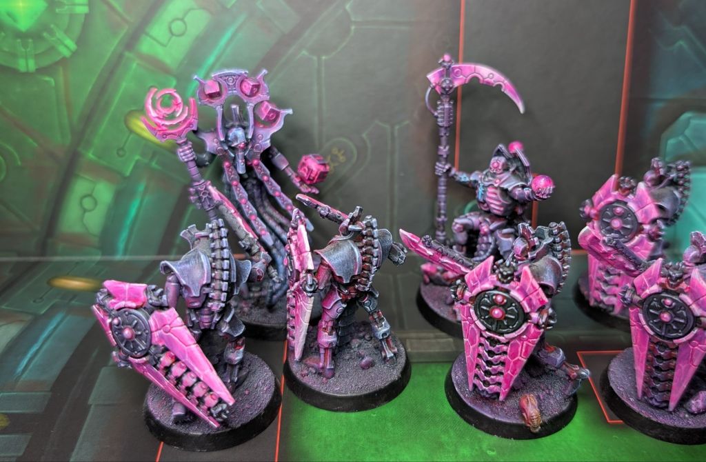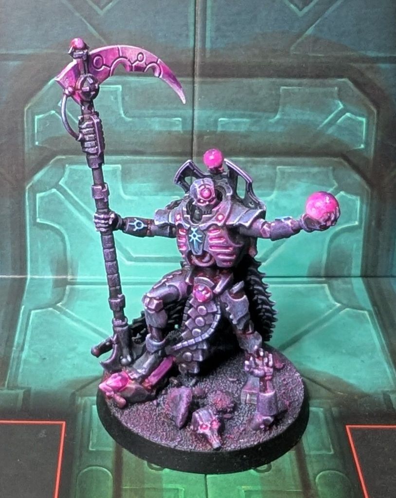 “How fascinating.” With a nod from Farreskh two Lychguard stepped suddenly out of formation, their hyperphase blades crossed nanometers away from the Chronomancer’s neck. “You see, Klotophis, you speck of sklopendra dung, I know a little of the technomantic arts myself. Enough to perform a basic diagnostic ritual on my sarcophagus when I awoke. Enough to see it had been tampered with, set to never awaken. If you or whichever of your fetid cronies it was had not overlooked the emergency seismic protocols I would have been trapped in there forev-”