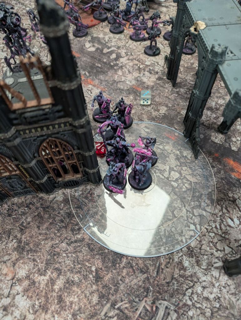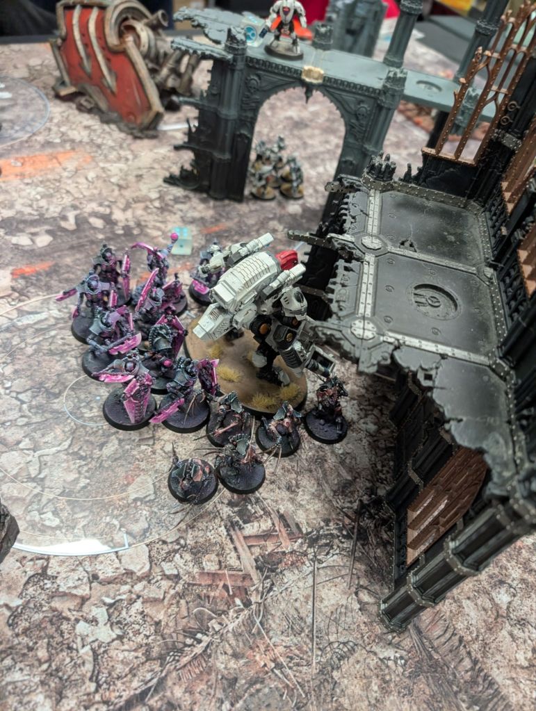 Churned mud sucked at their feet. They advanced more slowly now. More Tau appeared, surrounding them on three sides, pouring fire towards them. Farreskh swore. They’d walked right into a killbox. Lychguard started to fall more quickly, even their Dispersion Shields being overwhelmed by the volume of fire. Though they rose again it was not fast enough.