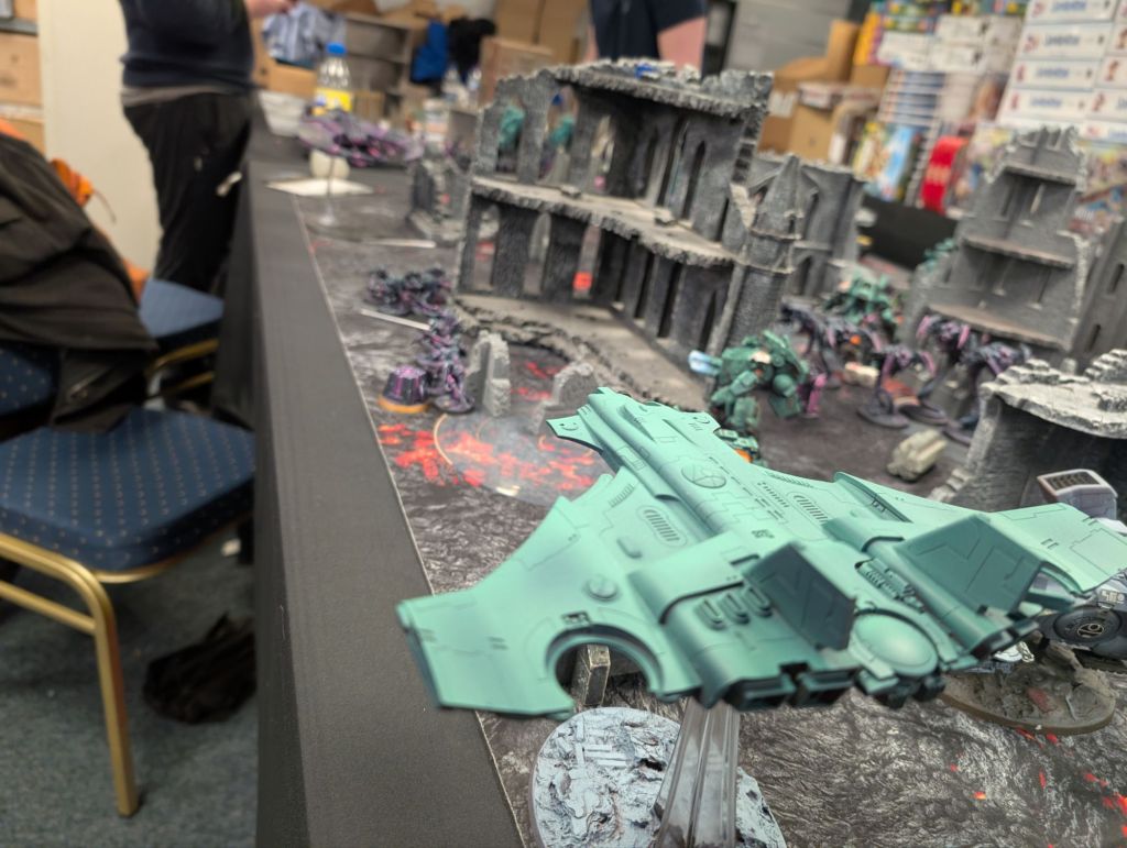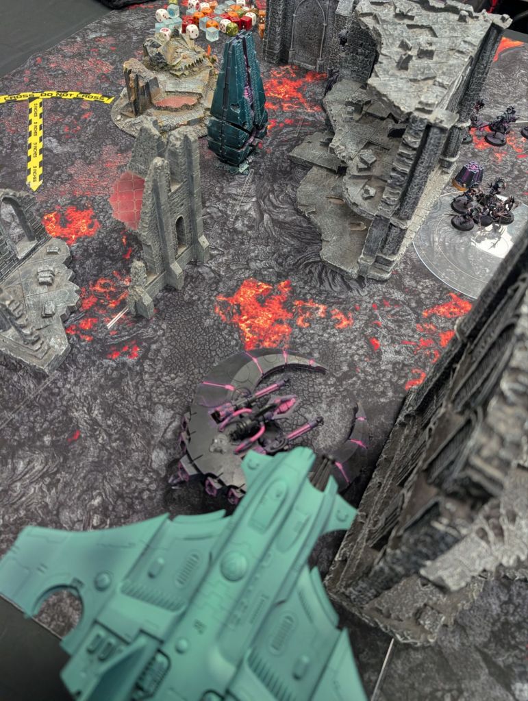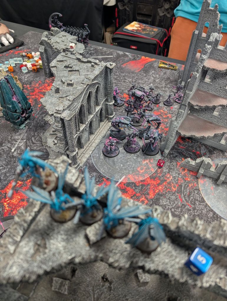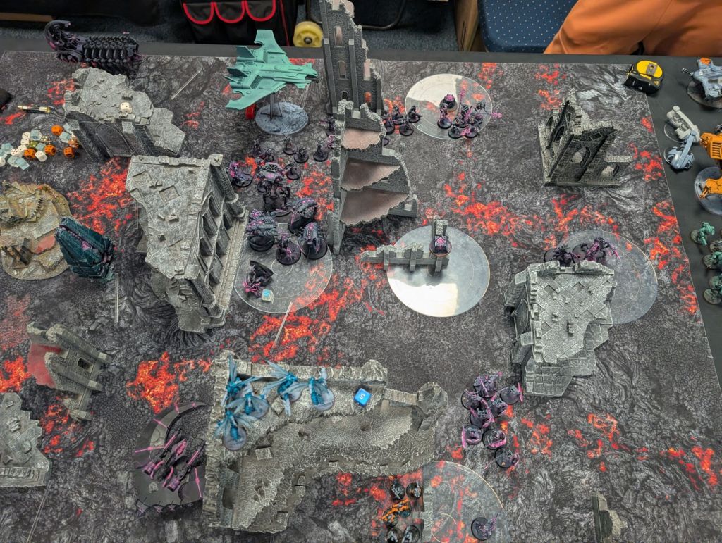 Air superiority established, the Barracuda banked around and strafed the Necron lines, while flights of Vespids seized the opening to descend upon the battlefield, neutron blasters blazing.