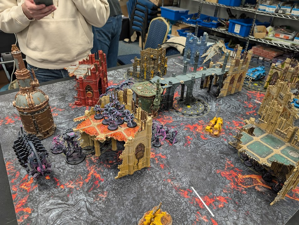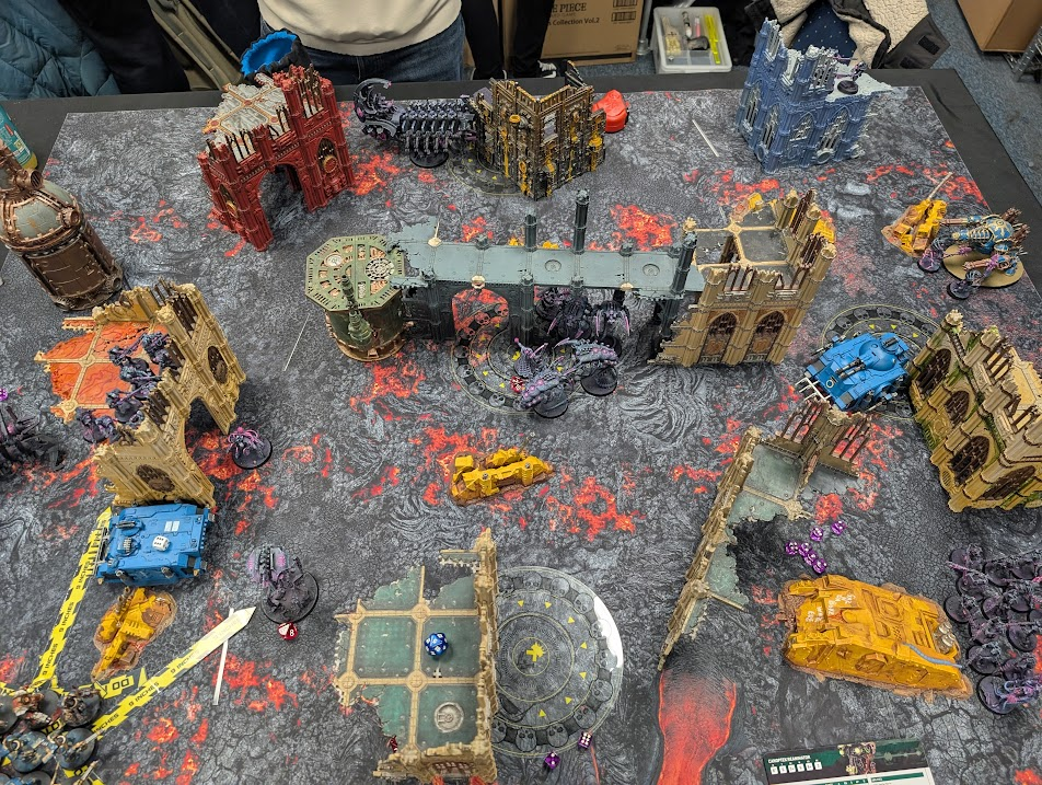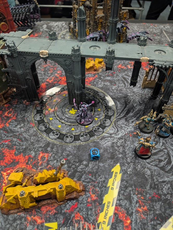 Behind it came a Mutilith Vortex Beast. Looking at it too closely still caused strange glitches to spread across her vision. Recalling her previous experience with such a monster Farreskh signalled to the Doomsday Ark artillery to take it down while she guided the march of her Lychguard towards the Thousand Sons infantry.