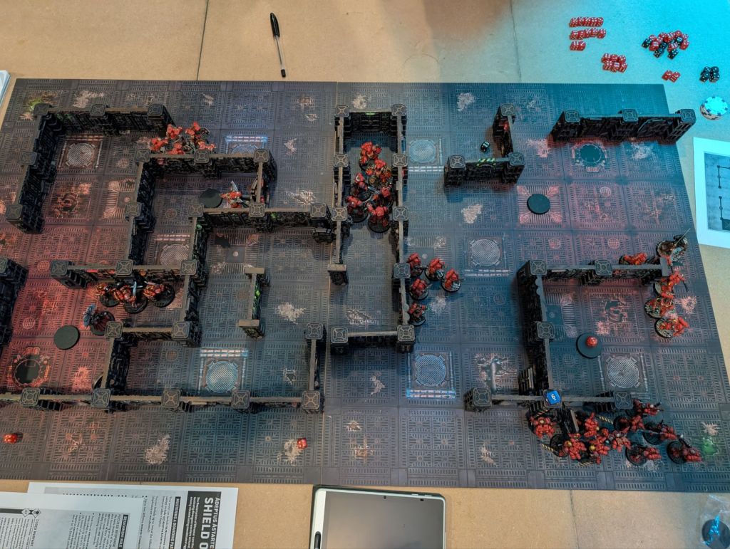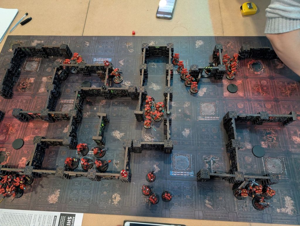 - Having Terminators is a big advantage on this mission, since sticking them in the middle almost guarantees 20 points there. The downside is that, at a full third of my points, it meant I was comparatively understrength outside the central chamber and I couldn’t afford to have them just run away and hide afterwards, risking handing my opponent 10 points for killing them (which was in fact the case in both games). Probably still worth it overall, I just needed to support them better once they got out rather than relying on them to tank everything.